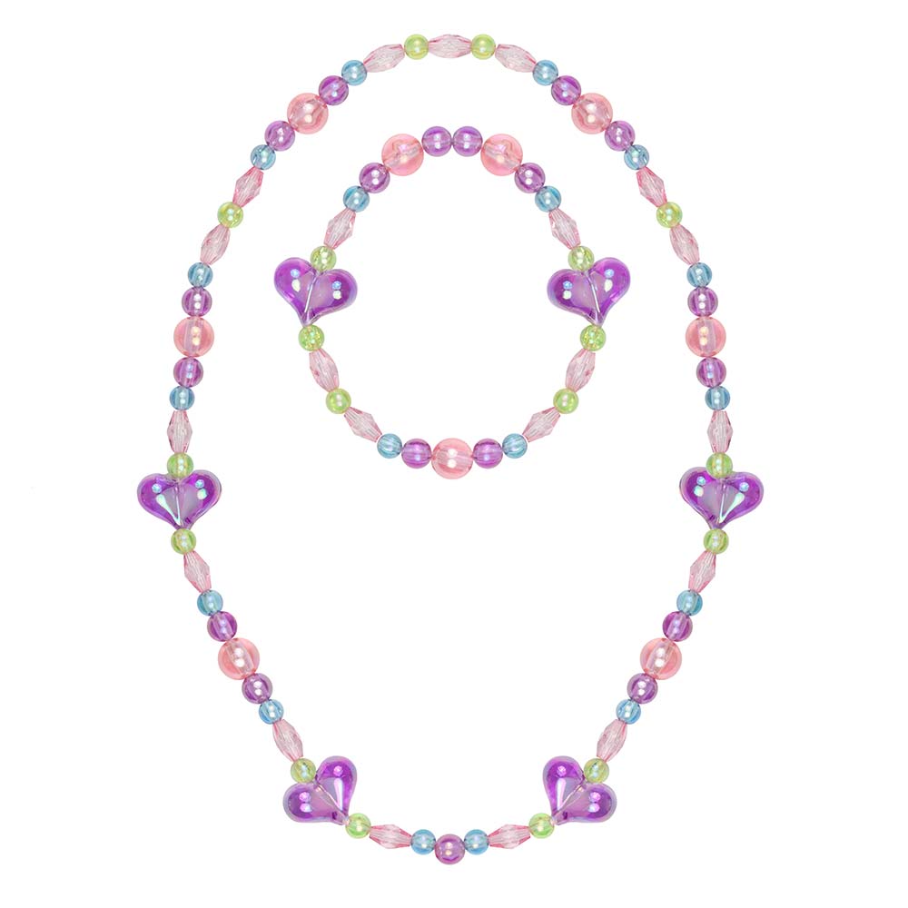 Parure composta da bracciale e collana elastici realizzati con perline assortite a forma di cuore, stondate e perline miste in vari colori: verde, rosa lilla e turchese. La collana misura 16 cm ed il bracciale misura cm 6,00. Indossa la tua parure per conferire al tuo look uno stile personalizzato esaltando i colori del tuo abbigliamento quotidiano. Un regalo delizioso adatto per qualsiasi occasione.