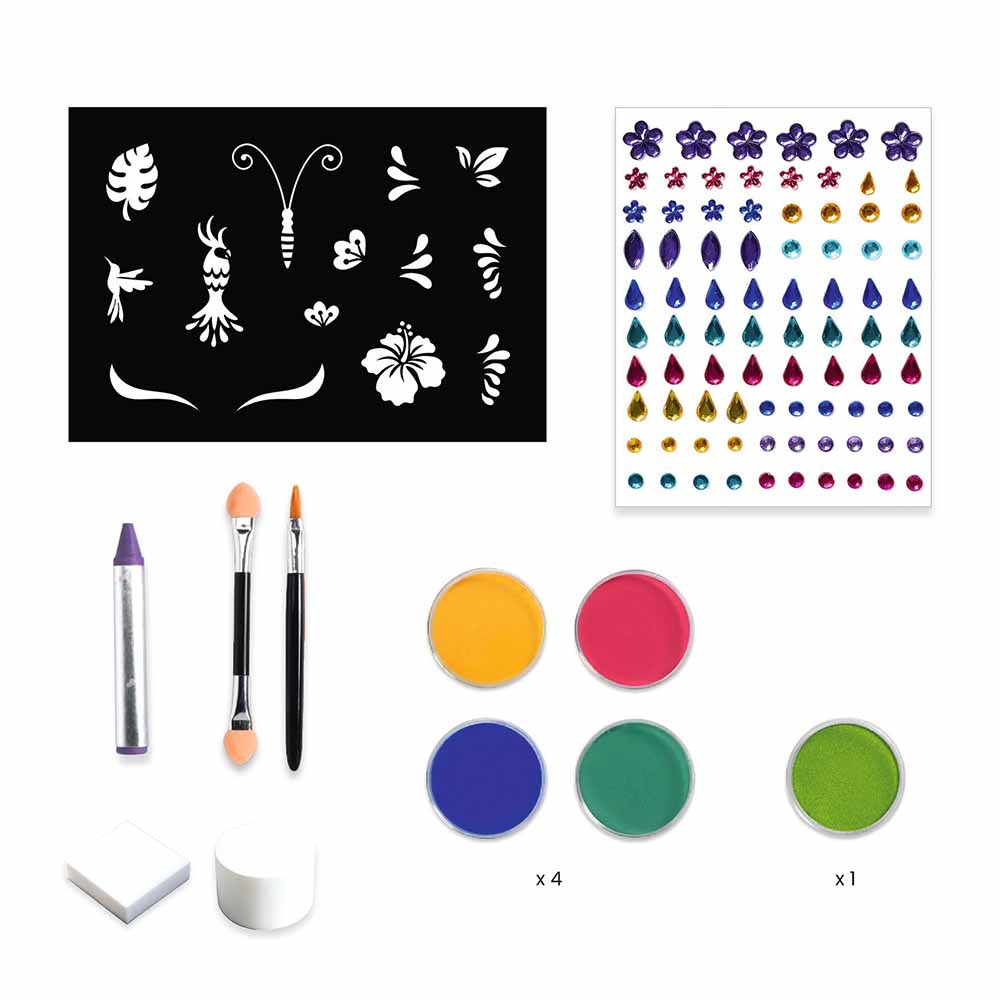 Il kit trucco artistico Rio de Janeiro di Djeco è un set professionale completo progettato per trasformare i bambini in coloratissimi personaggi come pappagalli esotici, farfalle variopinte o creature floreali. Questo set si distingue per la qualità superiore dei suoi componenti: include colori in crema dalla stesura fluida, un ombretto metallizzato per rifiniture brillanti e oltre 40 perline e strass adesivi per aggiungere un tocco magico a ogni creazione. Grazie agli stencil cutanei inclusi e al libretto di istruzioni dettagliato, è possibile realizzare trucchi complessi e definiti con estrema semplicità, garantendo un risultato spettacolare anche per chi è alle prime armi.