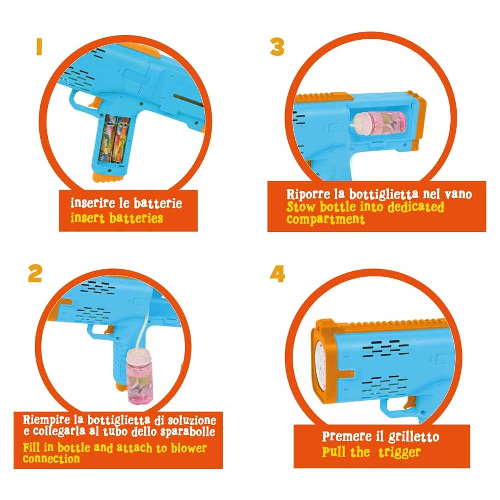 La pistola Multibolle è un dispositivo ad alte prestazioni progettato per trasformare il gioco all’aperto in uno spettacolo magico. Realizzata con materiali plastici resistenti agli urti e caratterizzata da vivaci tonalità azzurro-arancio, questa sparabolle a batteria integra un sistema di luci LED che illumina ogni scia di sapone, creando atmosfere incantate durante feste e compleanni. Il meccanismo a pescaggio diretto dal flacone da 50 ml incluso evita fuoriuscite accidentali, garantendo un flusso continuo e pulito.