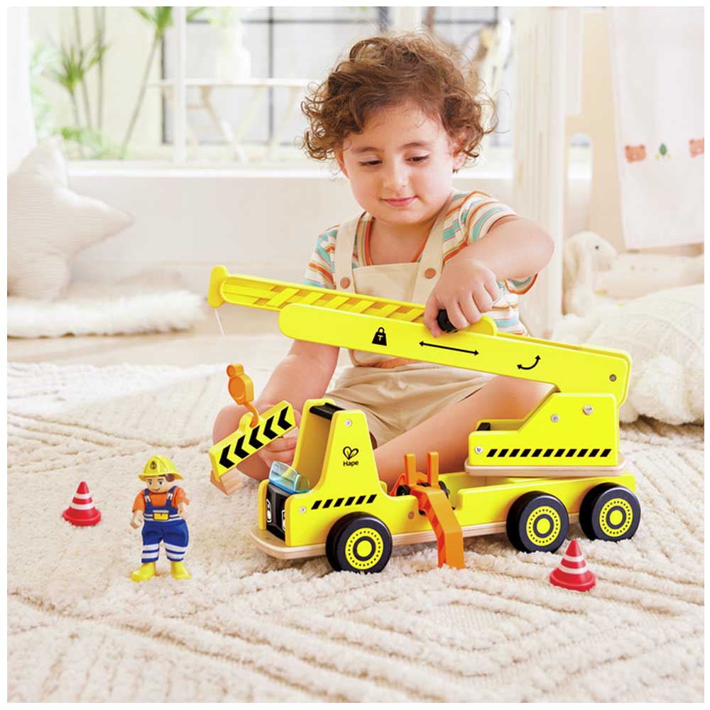 Il set Hape Gru porta l’emozione di un vero cantiere professionale nelle mani dei piccoli costruttori. Questo veicolo d’ingegneria vanta una cabina di comando capace di ruotare a 360 gradi, offrendo un’operatività totale e realistica. Il braccio della gru è il cuore del set: può essere sollevato con un’inclinazione di quasi 180 gradi e si estende fino a una lunghezza superiore ai 50 cm. Grazie al sistema di sollevamento a manovella, i bambini possono gestire il gancio con estrema precisione, movimentando materiali proprio come in un vero sito di costruzione. Il set include accessori fondamentali come il personaggio dell’operatore, barriere di sicurezza e coni stradali per un’esperienza di gioco completa e strutturata.