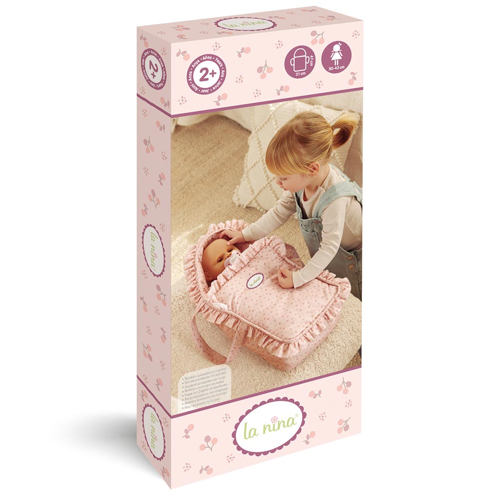 Regala alla tua bambina un accessorio adorabile e funzionale con il porta bambolotto “Olivia” di La Nina! Realizzato in morbido tessuto rosa con deliziosi decori floreali, questo accessorio è perfetto per trasportare il suo bambolotto preferito ovunque in tutta comodità. Le pratiche maniglie facilitano la presa e il trasporto, rendendo ogni uscita un momento di gioia e gioco creativo.
