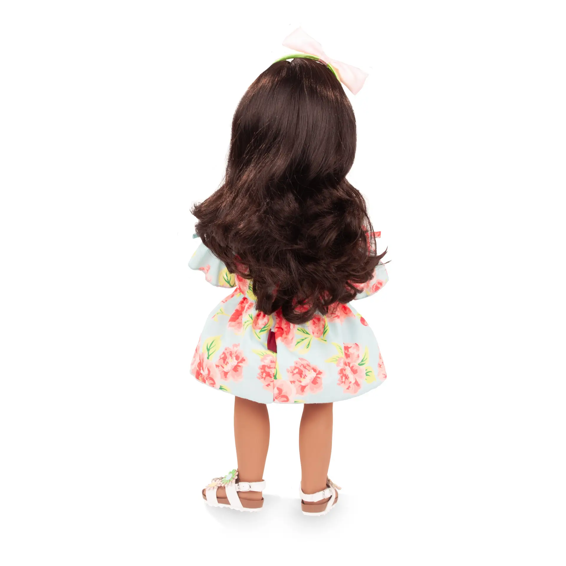 Happy Kidz Ava è una bambola meravigliosa che conquista al primo sguardo. Completamente snodabile con i suoi folti e morbidi capelli neri e gli occhi marroni indossa un abito estivo davvero delizioso. Con fantasia a rose e giocosi volant, irradia eleganza e fascino ed è pronta per una bellissima passeggiata con le amiche. Completata da sandali floreali e da una fascia per capelli coordinata, invita a coinvolgenti e divertenti giochi di ruolo. Grazie alle articolazioni mobili, può essere posizionata in tanti modi diversi e stimola la narrazione creativa. Realizzata con grande cura questa straordinaria una bambola esprime eleganza e gioia.