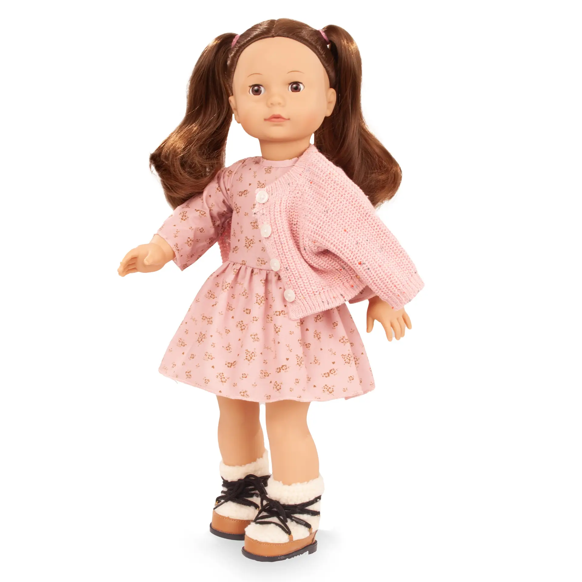 La bambola Precious Day Elisabeth ha lunghi capelli castani e dolci occhi marroni . Indossa un abito con volant e stampa floreale, un cardigan lavorato a maglia e stivali invernali. È articolata e posizionabile, per favorire lo sviluppo del senso di responsabilità e della condivisione incoraggia l’immaginazione e l’empatia. Elisabeth accompagna i bambini nel gioco di ruolo assicurando ore ed ore di divertimento e narrazione