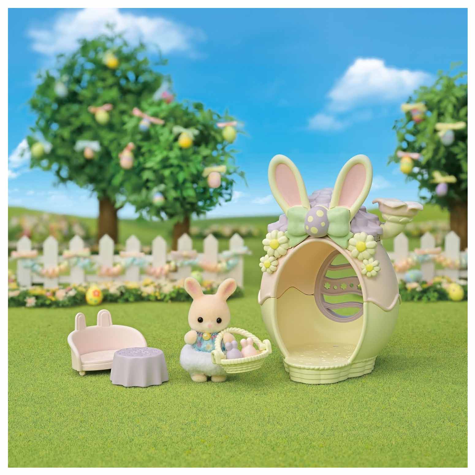 Il Portauova di Pasqua di Sylvanian Families è un set stagionale incantevole, progettato per celebrare le festività pasquali attraverso il gioco simbolico. Il cuore del kit è rappresentato dal Bebè Coniglio Marguerite, che per l’occasione indossa un esclusivo abito a tema curato nei minimi dettagli. La struttura principale è una casetta decorata con delicati motivi di uova e coniglietti, che funge sia da elemento espositivo sia da scenario per avventure domestiche. Il set è arricchito da accessori coordinati, come le uova di Pasqua sagomate e un piccolo cestino, che permettono di ricreare la tradizionale caccia all’uovo in un ambiente minuziosamente rifinito.