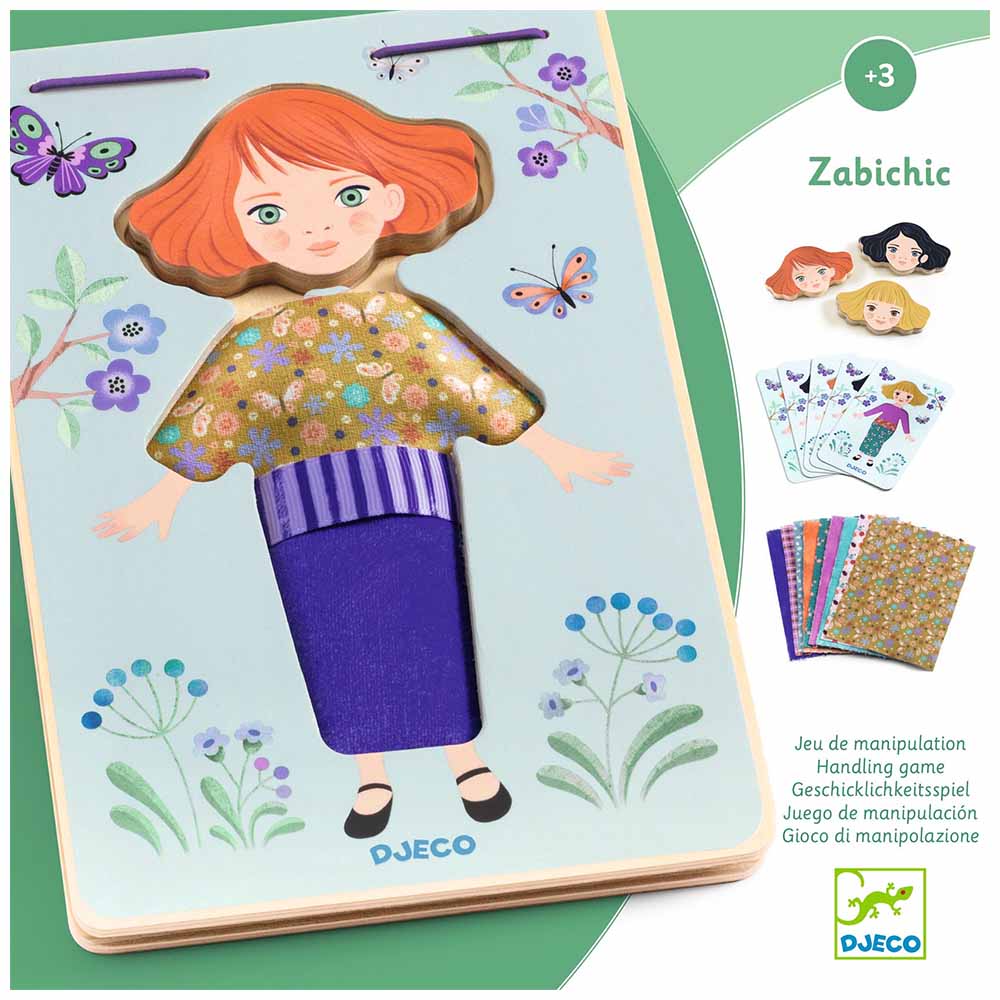 ZabiChic è un innovativo set di design tessile che invita i bambini a esplorare il mondo della moda attraverso il tatto e la fantasia. Il cuore del gioco è una solida base in legno certificato FSC, progettata con un sistema di apertura e chiusura che permette di bloccare diversi scampoli di tessuto e nastri colorati. In questo modo, i piccoli stilisti possono comporre infiniti outfit in modo semplice e ordinato, utilizzando le tre teste intercambiabili per dare vita a personaggi sempre nuovi.