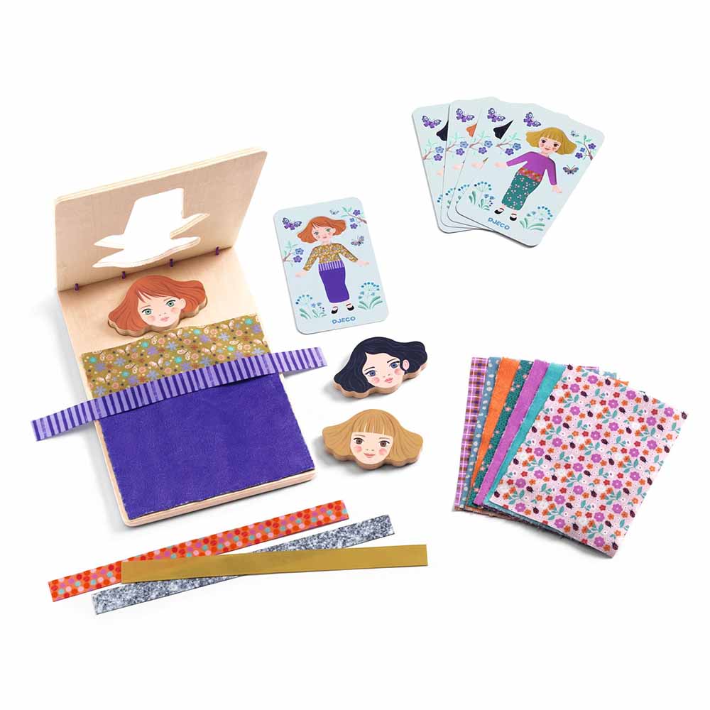 - Contenuto: 1 base e 3 teste in legno, 9 tessuti, 4 nastri, 5 carte fronte-retro