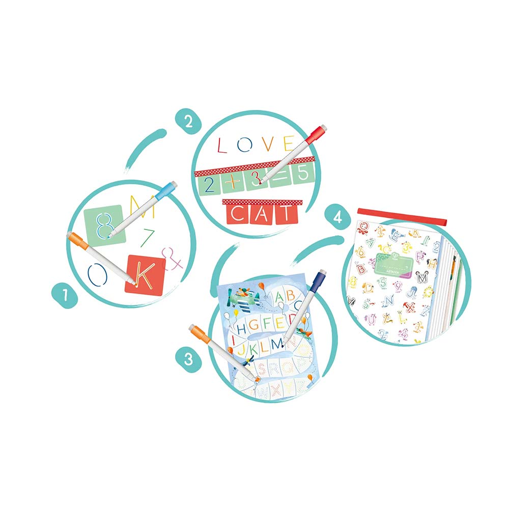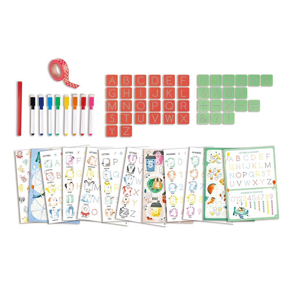 Il set include ben 44 stencil di lettere e numeri, insieme ad un album con 10 attività didattiche, che ti aiuteranno a migliorare la tua scrittura e ad apprendere in modo più efficace.