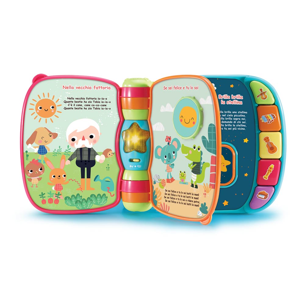 Il Libricino Interattivo di V-Tech è un meraviglioso libro ricco di colori, suoni e scoperte, pensato per intrattenere e educare i bambini più piccoli in modo divertente. Questo coloratissimo libro include 6 canzoncine da ascoltare, personaggi e oggetti in rilievo per stimolare la coordinazione fine, e 5 pulsanti interattivi che attivano diversi suoni e strumenti musicali. La stellina luminosa lampeggia a ritmo delle canzoncine, rendendo l’esperienza ancora più coinvolgente.