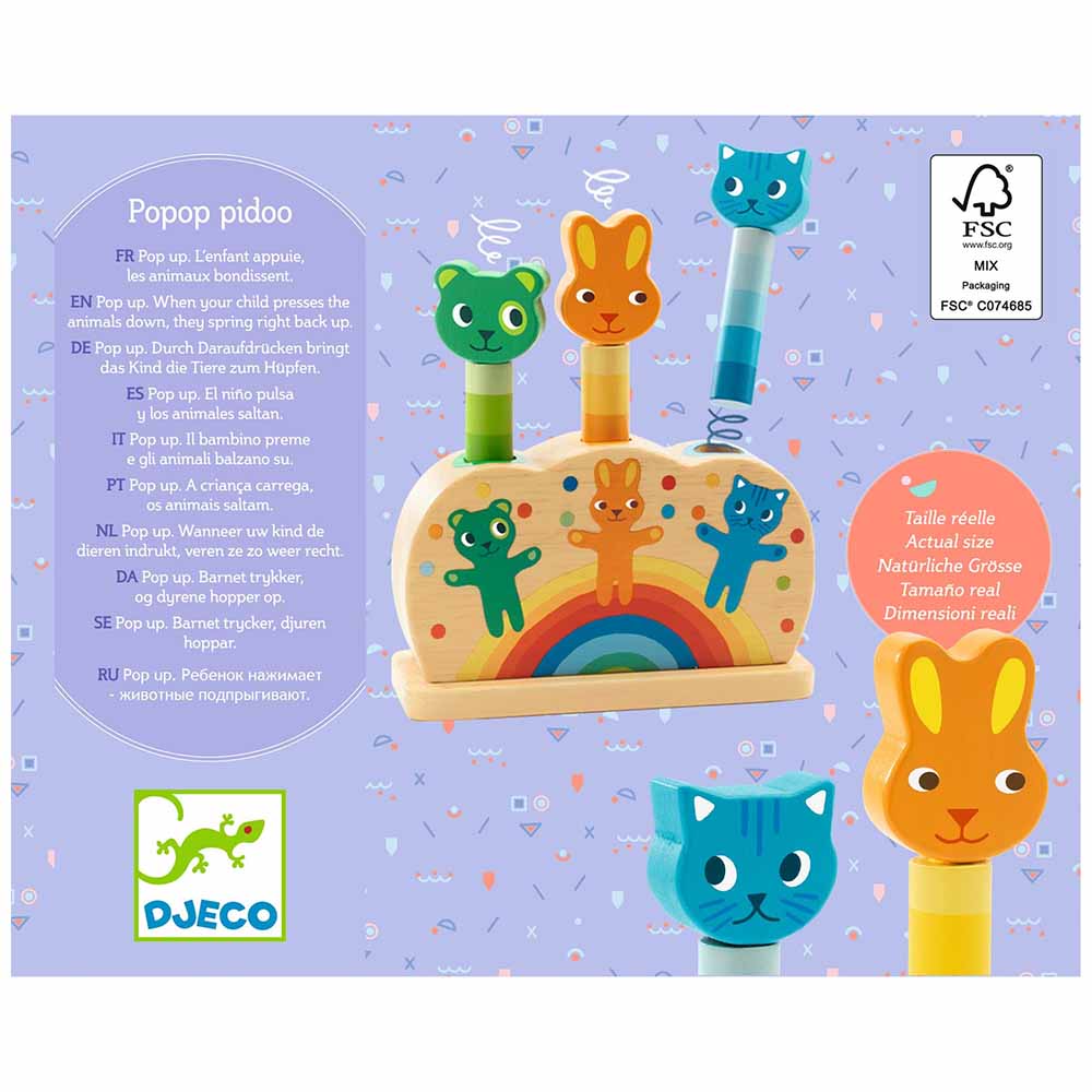 Djeco Popop Pidoo Gioco Pop-Up in Legno con Animali Saltellanti