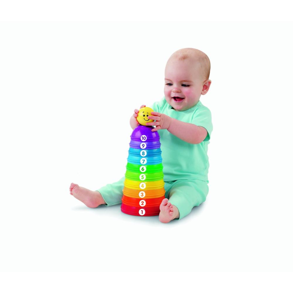Diverse modalità di gioco con le Scodelle trasformelle. Facili da impilare verticalmente le 10 scodelle tondeggianti, possono anche incastrarsi l’una nell’altra. Pensate nei dettagli per stimolare l’apprendimento dei più piccoli, tutte le scodelle hanno un colore ed un numero che le contraddistingue. Inoltre le scodelle di dimensioni simili si possono incastrare e trasformare in sfere. Il set delle Scodelle trasformelle è arricchito da una pallina a sonaglio che può essere posta in cima alla pila di coppette o inserita all’interno di due coppette incastrate per un maggiore divertimento! Dai 6 mesi.