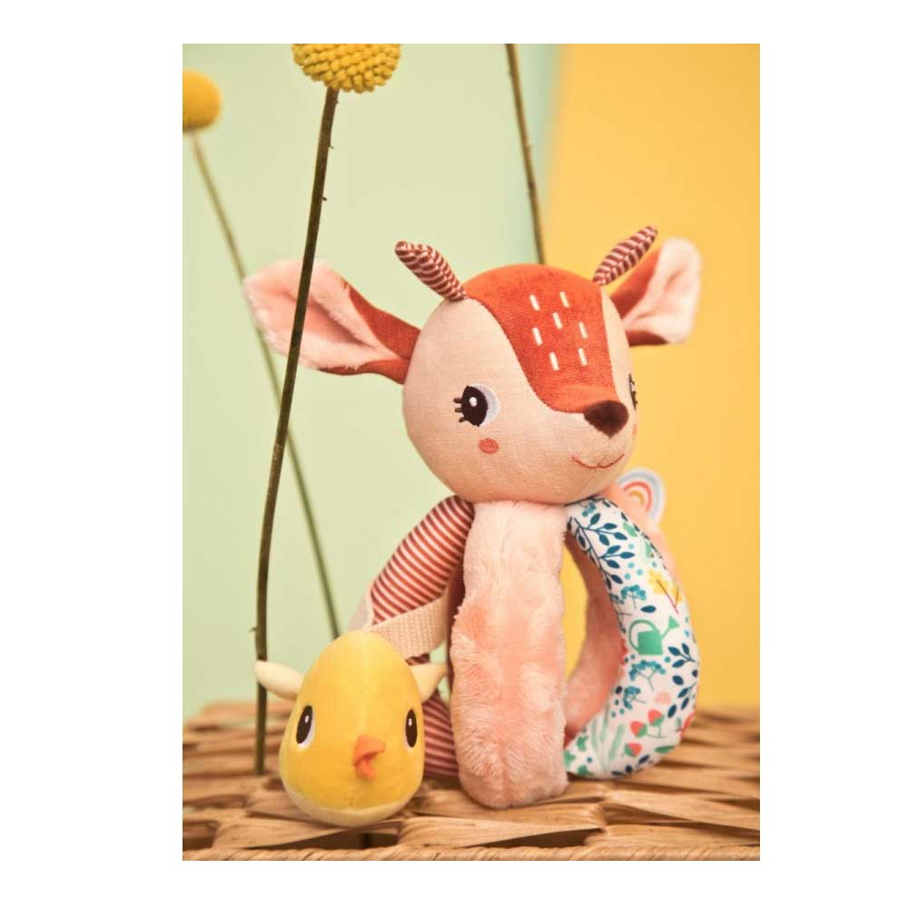 Il sonaglino con manici Stella è un giocattolo affascinante progettato per intrattenere e stimolare il tuo bambino. Facile da afferrare con le manine, questo sonaglino è ideale per i piccoli esploratori in erba. Fra i manici si nasconde un amichetto, che aggiunge un elemento sorpresa e gioioso al gioco.