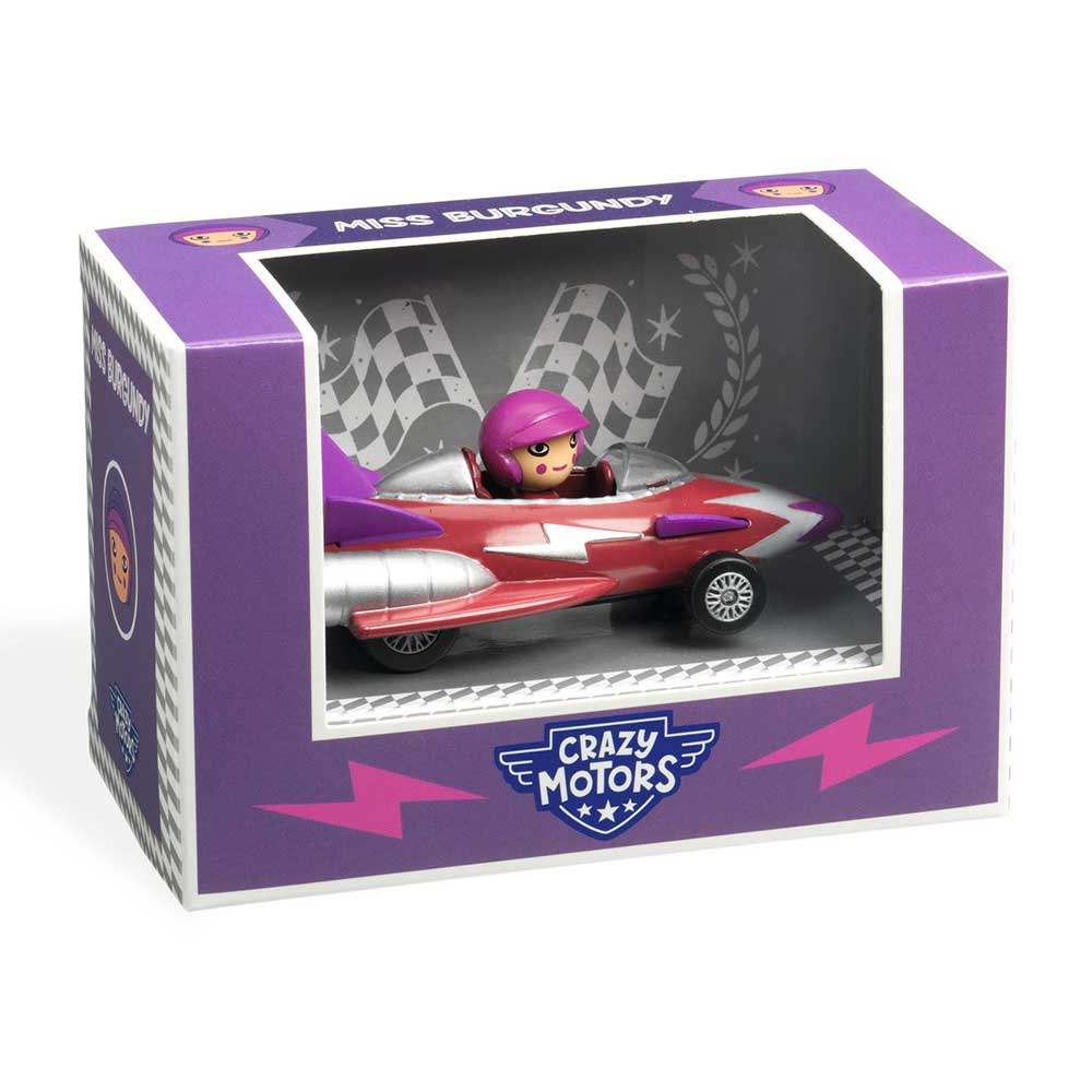 Miss Burgundy non teme nulla e è determinata a vincere la gara a ogni costo a bordo della sua auto-razzo. 3, 2, 1, via! Si scatena come un fulmine e conquista la vittoria! Applausi!