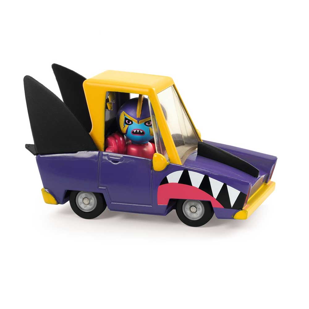 Shark’N’Go e il suo compagno pescecane non godono di certo di una buona reputazione in città. Shark è un’auto che porta fieramente il suo nome, con denti aguzzi che suggeriscono di evitarla a tutti i costi.