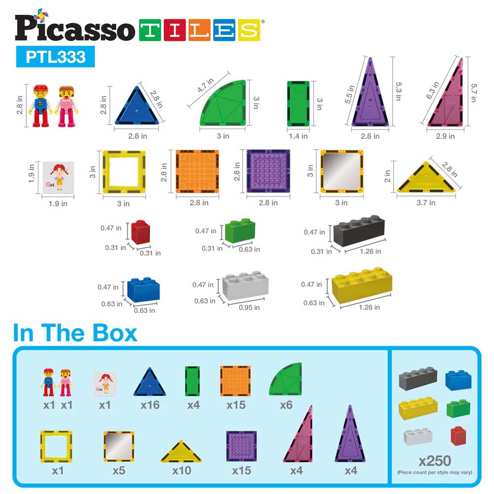 Porta la tua immaginazione verso nuove vette con il set combinato PicassoTiles da 333 pezzi! Questo innovativo set di costruzione unisce piastrelle magnetiche e mattoncini classici, offrendo possibilità creative senza fine. I bambini possono costruire strutture fino a 72 pollici di altezza, creando mondi straordinari e sviluppando competenze fondamentali grazie a questo versatile set.