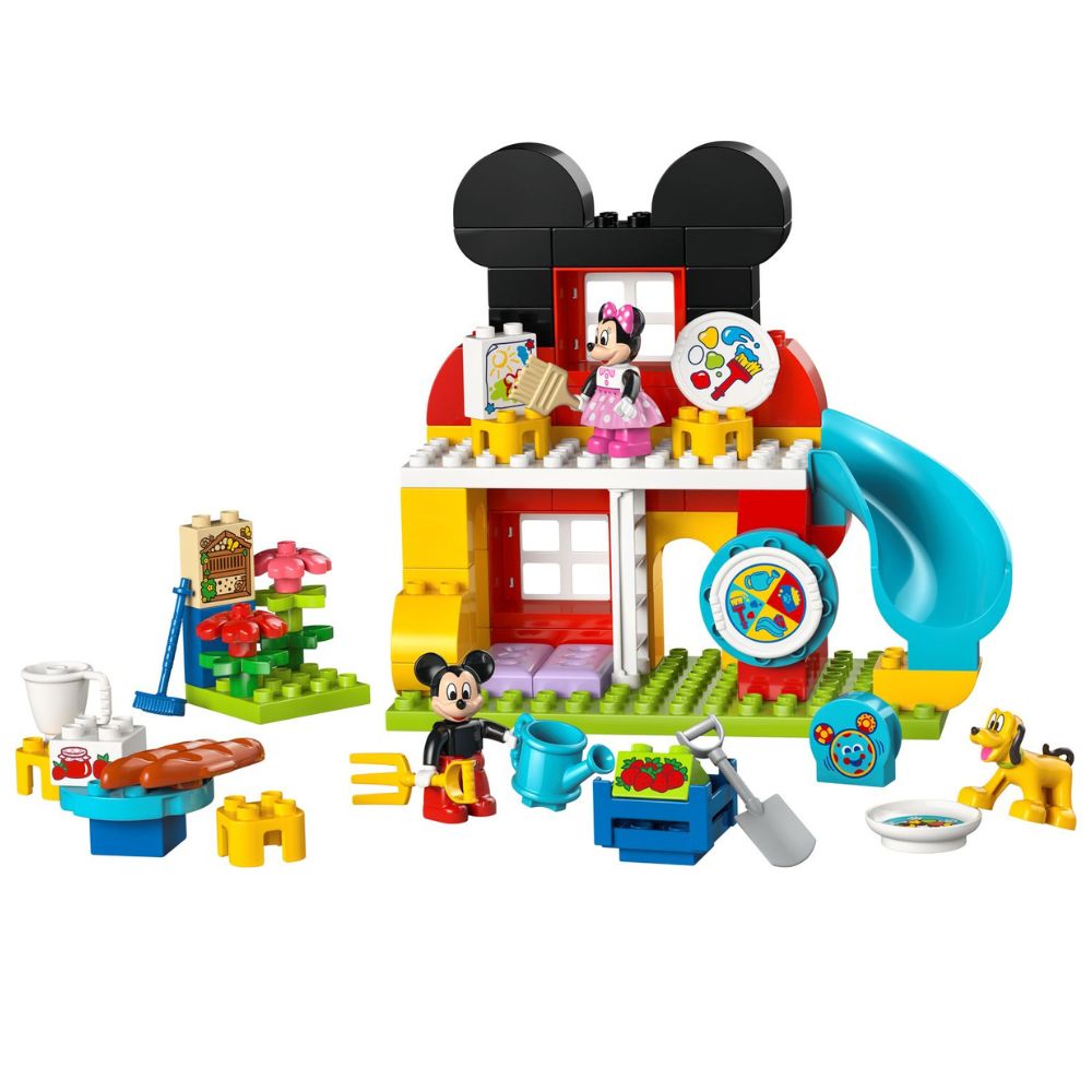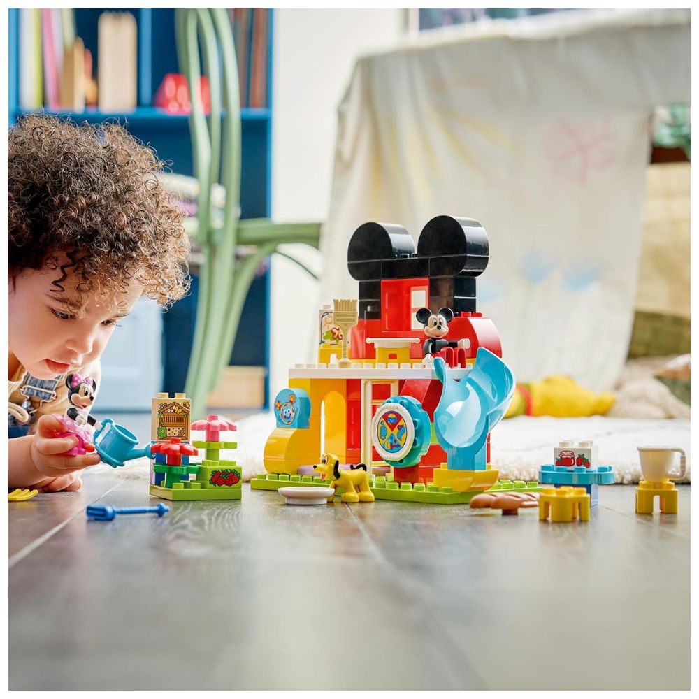 La Casa di Topolino LEGO DUPLO invita i più piccoli a esplorare un mondo di gioco domestico e creativo insieme ai personaggi Disney più amati. Questo playset di alta qualità presenta una struttura a due piani ricca di dettagli interattivi, tra cui una sala d’arte, uno scivolo esterno e un giardino con hotel per insetti. Realizzato con mattoncini extra-large in plastica ABS atossica, il set include le figure di Topolino, Minnie e Pluto, oltre al mattoncino speciale Toodles. Gli elementi mobili e gli accessori, come gli attrezzi da giardinaggio e i componenti per la colazione, permettono ai bambini di immergersi in attività quotidiane stimolanti, dalla cura degli animali alla preparazione della marmellata.