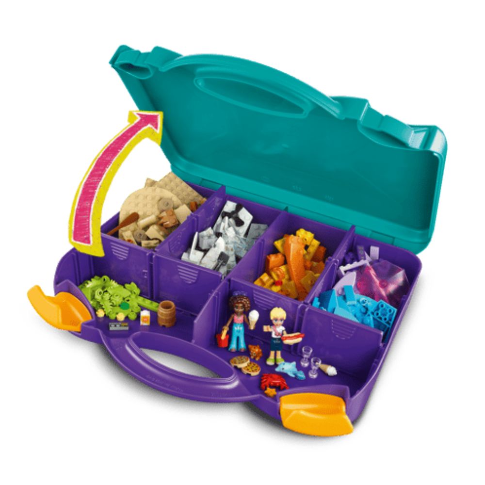Il set LEGO Friends Valigia Creativa da Spiaggia e Da Viaggio è un’esperienza di gioco dinamica e versatile, progettata per i bambini dai 5 anni in su. Questo innovativo set 2-in-1 permette di costruire scenari estivi dettagliati, come un idrovolante con elica funzionante e un bar sulla spiaggia, che possono essere trasformati in un motoscafo e una pizzeria all’aperto. La caratteristica distintiva è la robusta valigia portatile, che funge sia da contenitore per i 226 pezzi sia da base per il gioco, permettendo di portare l’avventura ovunque. Il set è completato da due mini-doll, un cane e un simpatico delfino, garantendo ore di intrattenimento creativo con la qualità costruttiva superiore tipica dei prodotti LEGO.