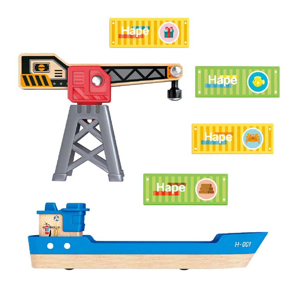 Hape Nave Portacontainer in Legno con Gru Magnetica