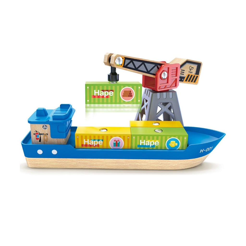 Sei nella categoria: Hape Nave Portacontainer in Legno con Gru Magnetica