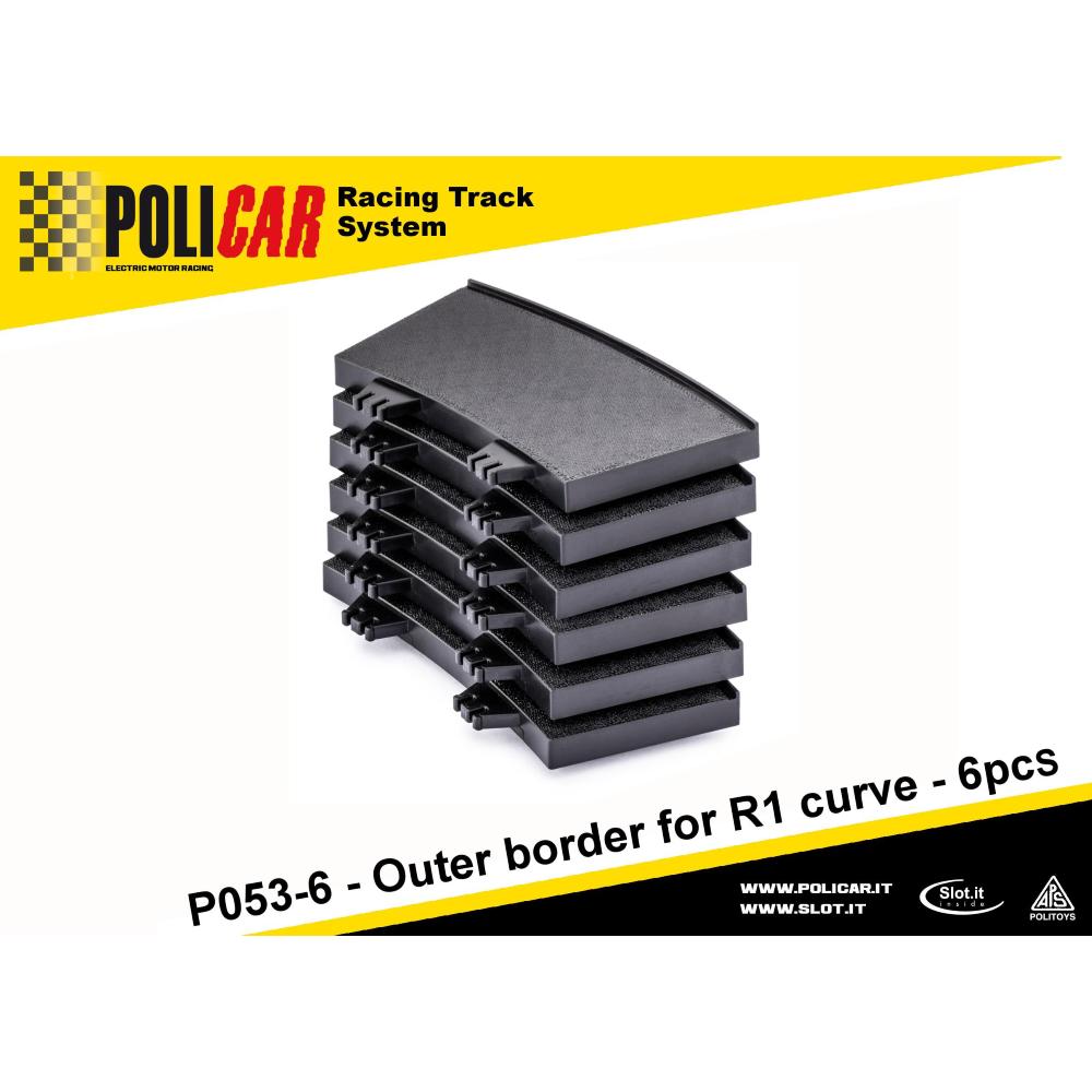Confezione contenente 6 bordi Esterni per Curva R1 45° x 60mm in plastica rigida con superficie ad alta aderenza.