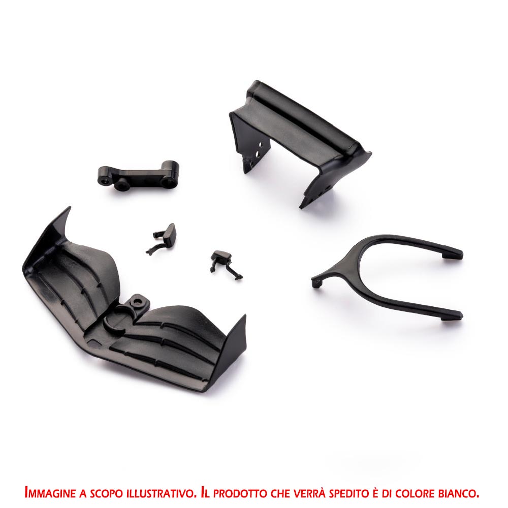 Confezione contenente ricambi originali per la Formula 1 Moderna 2024 (CAR10), tra cui l’alettone anteriore, l’alettone posteriore, gli specchietti destro e sinistro, l’halo e il porta illuminatore per il decode digitale Carrera. Questo set è compatibile con il modello Formula 1 Moderna 2024 (CAR10) e con la carrozzeria PCS10b.