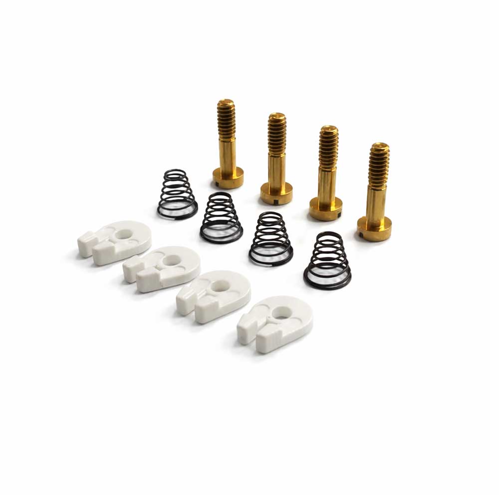 - Contenuto della confezione: 4 molle progressive medie, 4 viti metriche in ottone, 4 forchette in plastica.