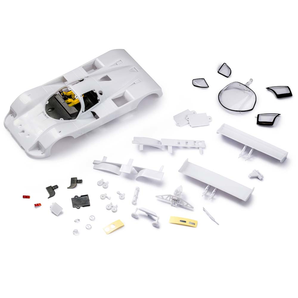 Il kit include una carrozzeria bianca stampata con cura e tutte le componenti aggiuntive essenziali per completare la tua Mazda 767B. Troverai vetri trasparenti, un alettone posteriore accuratamente riprodotto e un abitacolo dettagliato, elementi che contribuiscono a ricreare l’autentico spirito della vettura originale. Ogni pezzo è realizzato con materiali di alta qualità, garantendo durabilità e una finitura impeccabile una volta assemblato. La precisione nella stampa assicura che ogni curva, ogni presa d’aria e ogni linea aerodinamica della 767B sia catturata con fedeltà assoluta, offrendo un modello che non solo è bello da vedere, ma anche storicamente accurato.