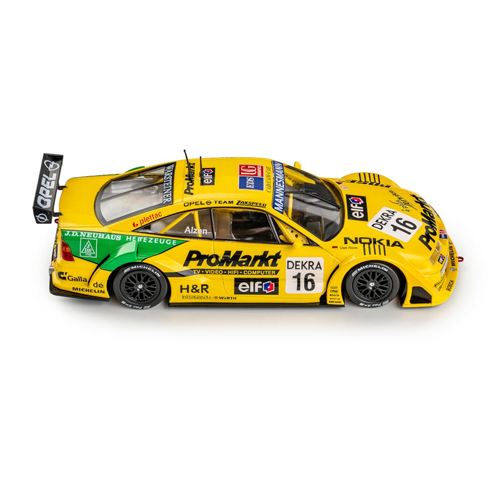 La Slot.it Opel Calibra V6 n.44 riproduce fedelmente la vettura guidata da Hans-Joachim Stuck durante la stagione DTM/ITC 1996. Questo modello in scala 1:32 si distingue per la sua livrea dettagliata e per le prestazioni elevate, grazie al motore MX15 V12/4 da 21.000 giri/min. Il telaio è predisposto per l’installazione del sistema 4WD, permettendo la conversione da trazione posteriore a integrale. La configurazione meccanica in linea e la possibilità di aggiornamenti rendono questo modello ideale sia per collezionisti che per appassionati di competizioni su pista.