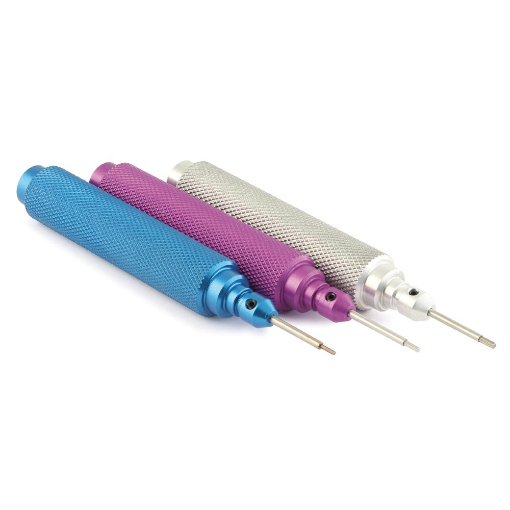 Nuovo chiavino esagonale professionale in alluminio zigrinato con punta .0.95″ in acciaio durissimo per grano M2 Slot.it. A differenza del modello precedente, il manico è anodizzato blu ed è leggermente più corto .