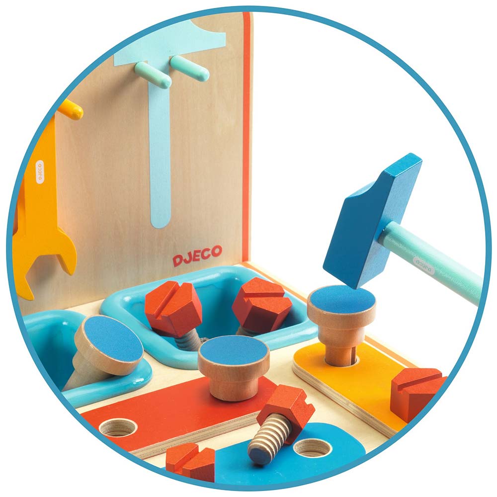 Sei nella categoria: Djeco Bricotoo, Tavolo da Lavoro Completo in Legno FSC